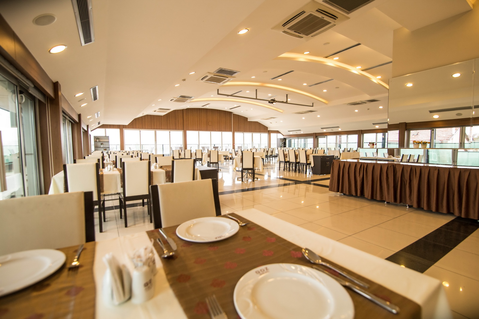 350 kişi kapasiteli restorantımızda profesyonel ekibimizin lezzetli yemekleriyle sizlerin damak tadına hitap ederken, büyüleyici Gediz manzarasıyla da gözlerinize hitap ediyoruz. Pazar günleri sizleri sevdiklerinizkle birlikte açık büfe kahvaltımıza bekliyoruz.